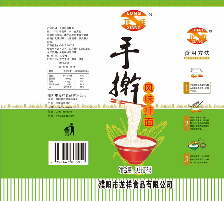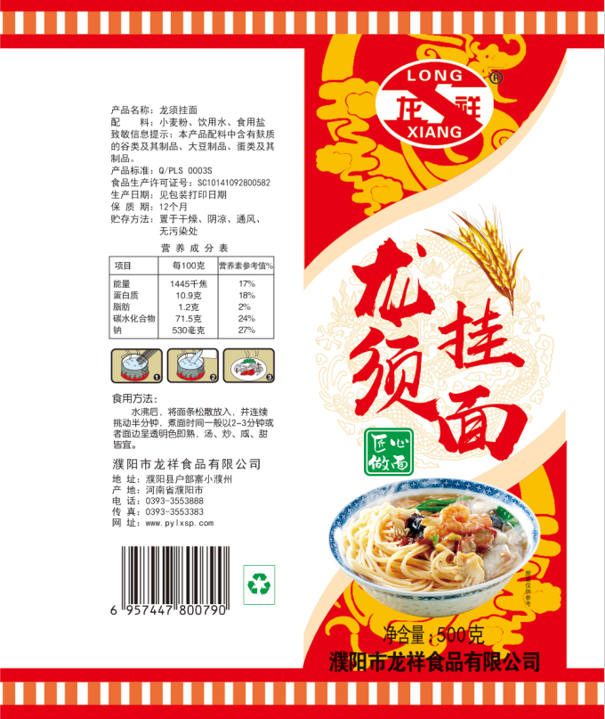 濮陽(yáng)市龍祥食品有限公司位于河南省濮陽(yáng)縣戶部寨鎮(zhèn)小濮州,始建于1994年,前期投資200萬(wàn)元,經(jīng)過(guò)幾年的努力,大力開(kāi)發(fā)市場(chǎng),由于市場(chǎng)的需求量急劇上升,出現(xiàn)供不應(yīng)求,于2004年擴(kuò)建,建成一座新型的現(xiàn)代化面粉加工企業(yè),并擁有全國(guó)先進(jìn)全自動(dòng)生產(chǎn)設(shè)備一套,產(chǎn)量由以前的100噸/天,提高到現(xiàn)在400噸/天。 2012年再次擴(kuò)大規(guī)模申請(qǐng)為濮陽(yáng)市龍祥食品有限公司,注冊(cè)資金500萬(wàn)元。2012年又投資800萬(wàn)元新建掛面生產(chǎn)線一條,日產(chǎn)掛面50噸。龍祥食品有限公司現(xiàn)有職工120余人,總工程師1人,專業(yè)技術(shù)人員10人,經(jīng)濟(jì)師1人,會(huì)計(jì)師1人,銷售人員2人,優(yōu)秀專業(yè)人員20余人。  龍祥公司自創(chuàng)建以來(lái),社會(huì)效益十分可觀。公司一直以“今天的質(zhì)量,明天的市場(chǎng)”為信念,“一切為了客戶需求,竭誠(chéng)追求完美品質(zhì)”為企業(yè)宗旨,走專業(yè)化經(jīng)營(yíng)和職業(yè)化管理的路子。